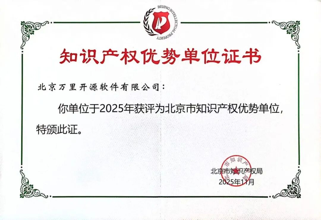 创意信息旗下万里数据库自创立以来,将自主创新与知识产权保护置于核心位置,积极践行“技术专利化、专利标准化”的发展路径,围绕数据库核心技术构建专利布局,并将知识产权管理贯穿于研发与商业化全流程,为获评“北京市知识产权优势单位”奠定坚实基础。该奖项的获评,是对万里数据库知识产权工作的高度认可,标志着万里数据库在技术创新与知识产权体系建设方面已达到北京市先进水平。